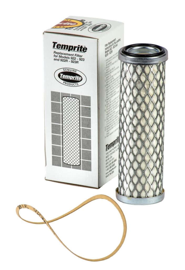 The Temprite Standard Filter employs a matrix-type borosilicate coalescent filter. These fine glass fibers cause the oil molecules to collide and create bigger droplets, until each is large enough to be forced to the outer drain layer of the filter. The droplets fall to the bottom of the separator and the oil is returned to the compressor. Because the Temprite Standard Filter is finer than any other filter, it picks up all effluent and dirt in the system down to 0.3 microns in size, increasing system efficiency and lowering energy costs.