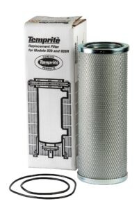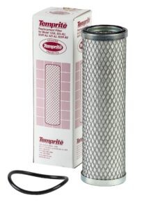 The Temprite Standard Filter employs a matrix-type borosilicate coalescent filter. These fine glass fibers cause the oil molecules to collide and create bigger droplets, until each is large enough to be forced to the outer drain layer of the filter. The droplets fall to the bottom of the separator and the oil is returned to the compressor. Because the Temprite Standard Filter is finer than any other filter, it picks up all effluent and dirt in the system down to 0.3 microns in size, increasing system efficiency and lowering energy costs.
